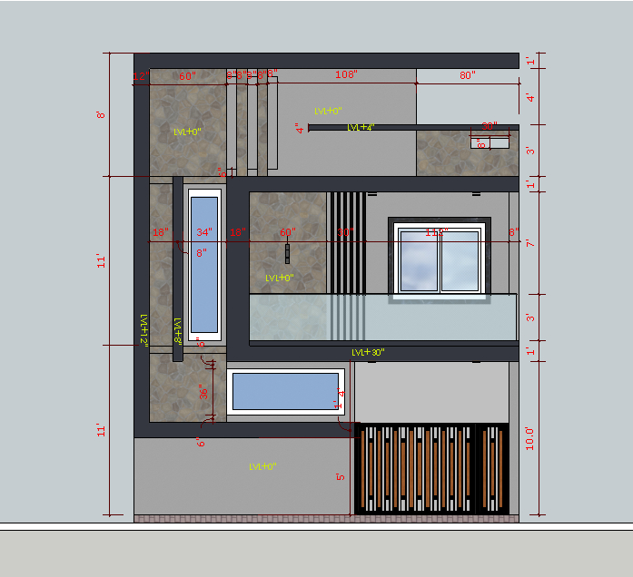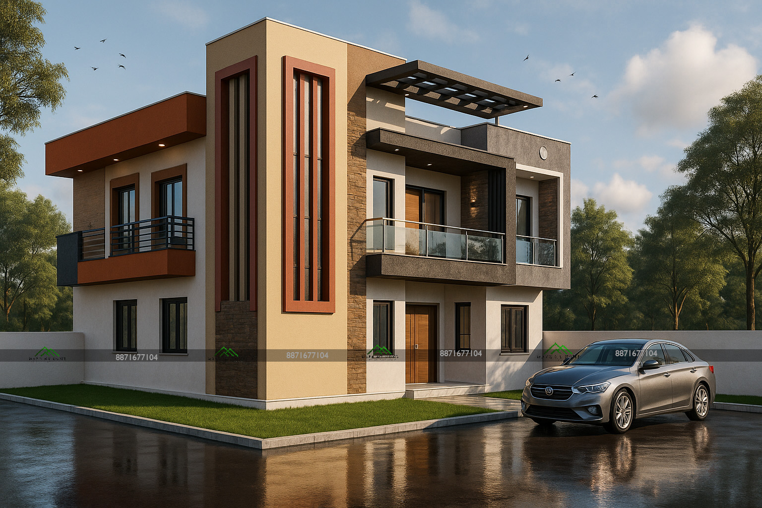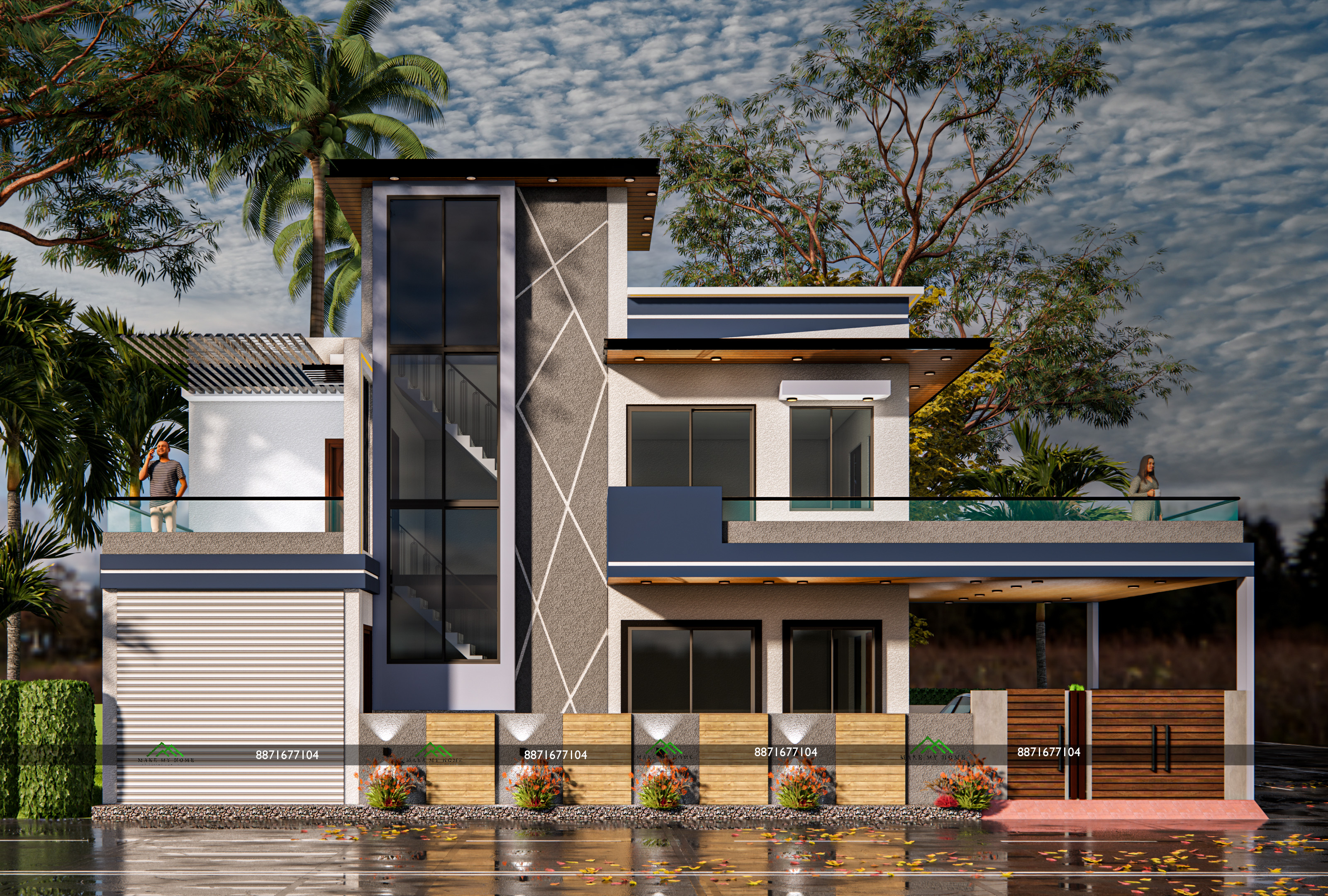 3D Elevation Design: A 3D elevation shows the external view of a building from one side — front, rear, or side — with realistic detailing. It helps visualize the structure’s style, material, and proportions before construction begins.