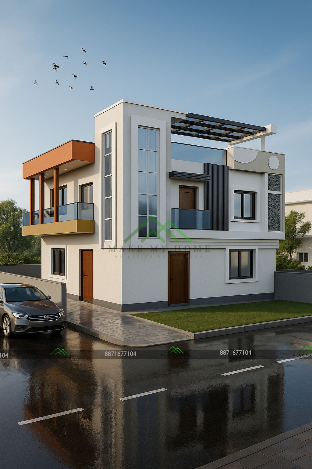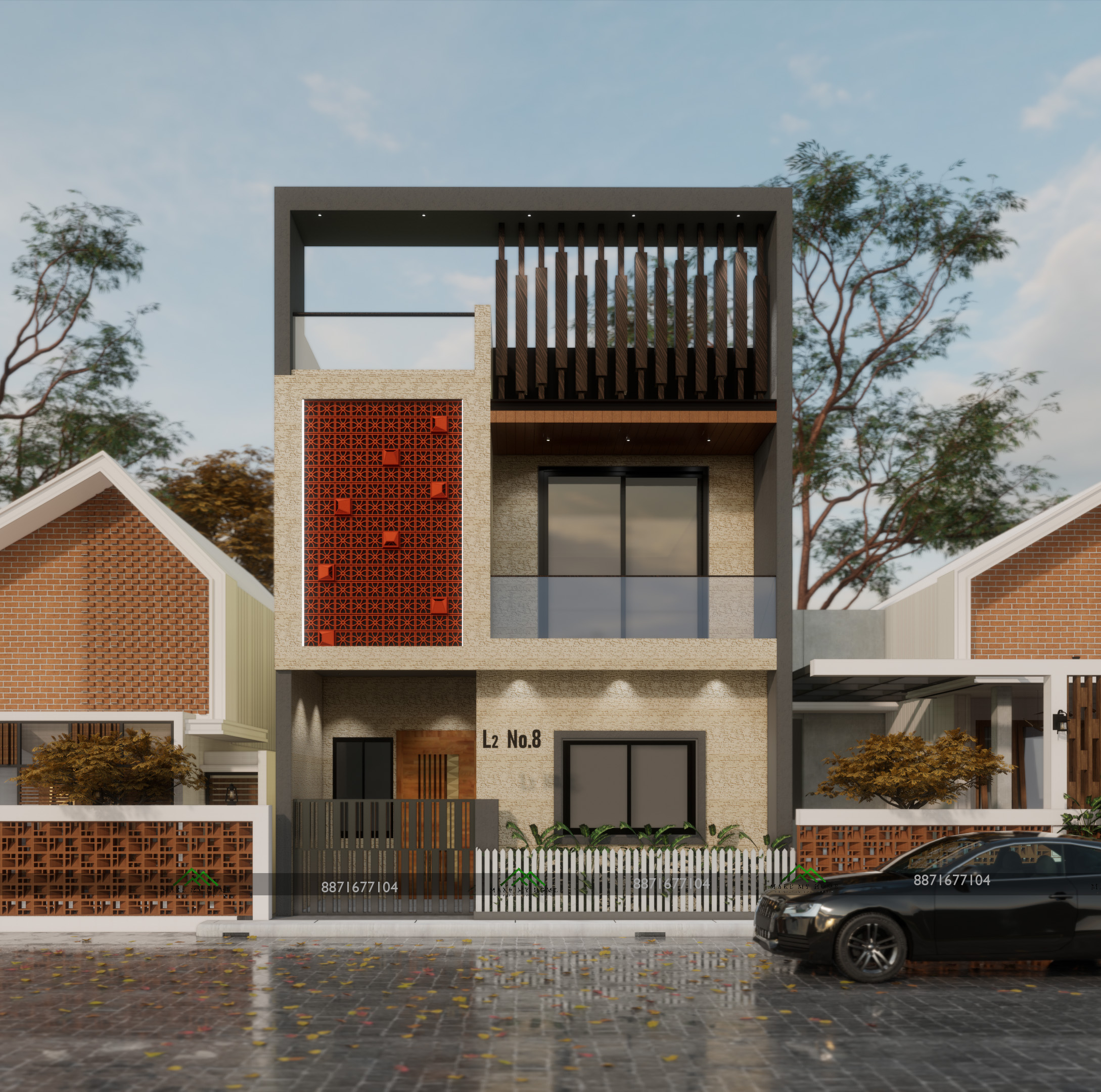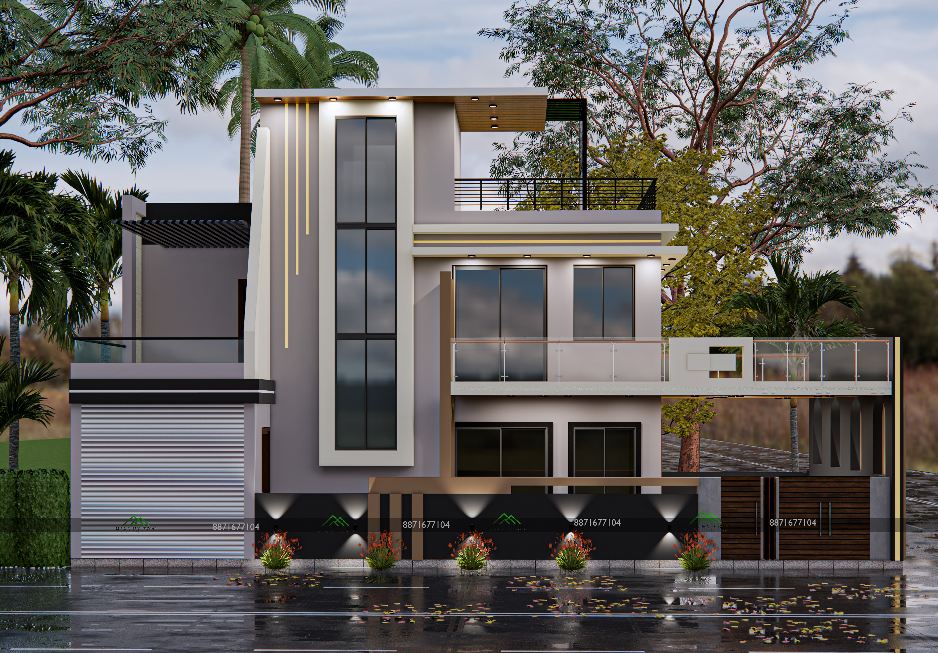 3D Elevation Design: A 3D elevation shows the external view of a building from one side — front, rear, or side — with realistic detailing. It helps visualize the structure’s style, material, and proportions before construction begins.